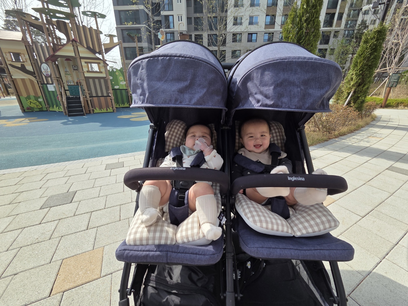 쌍둥이도, 엄마도 외출 루틴에 익숙해져요.